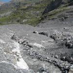 hier ist der Gletscher komplett von Geröll und Schutt bedeckt