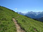 auf der orografisch rechten Talseite geht es über Blumenwiesen weiter taleinwärts