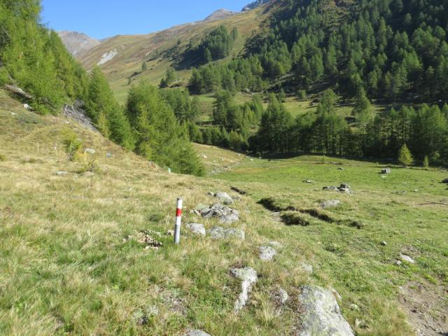 Tiefblick ins Val Tuoi. Gut ersichtlich der Wanderweg auf der anderen Talseite, den wir kurz davor durchwandert haben Datum 14.06.2022