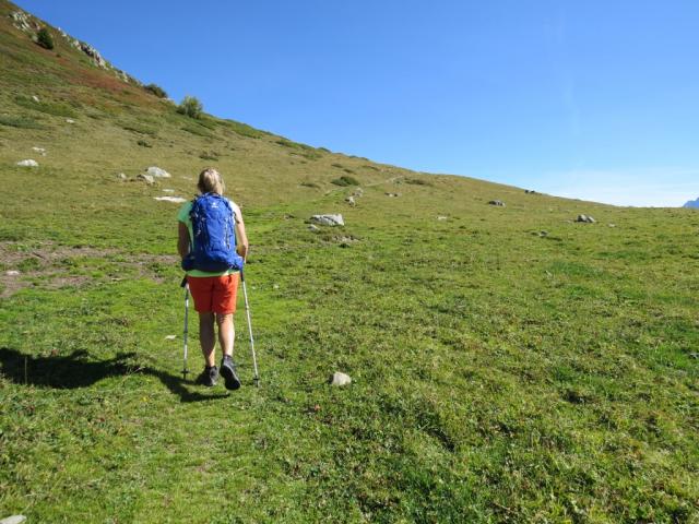 von den Alphütten der Alp Suot steigt der Weg nun stark an Datum 14.06.2022