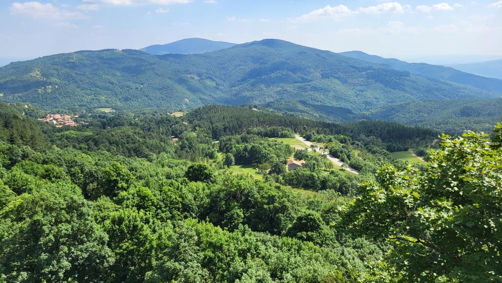 vom Kirchenvorplatz hat man eine traumhafte Aussicht auf die dichten Wälder des Nationalpark Foreste Casentinesi