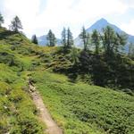 rechtshaltend durchlaufen wir nun unterhalb der Wasenalp einen schönen Lärchenwald