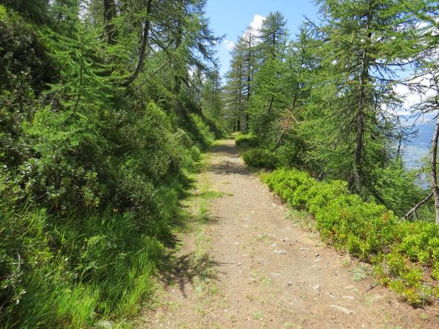...auf einem gut ausgebauten Weg Richtung Süden, durch sehr schöne Lärchenwälder...