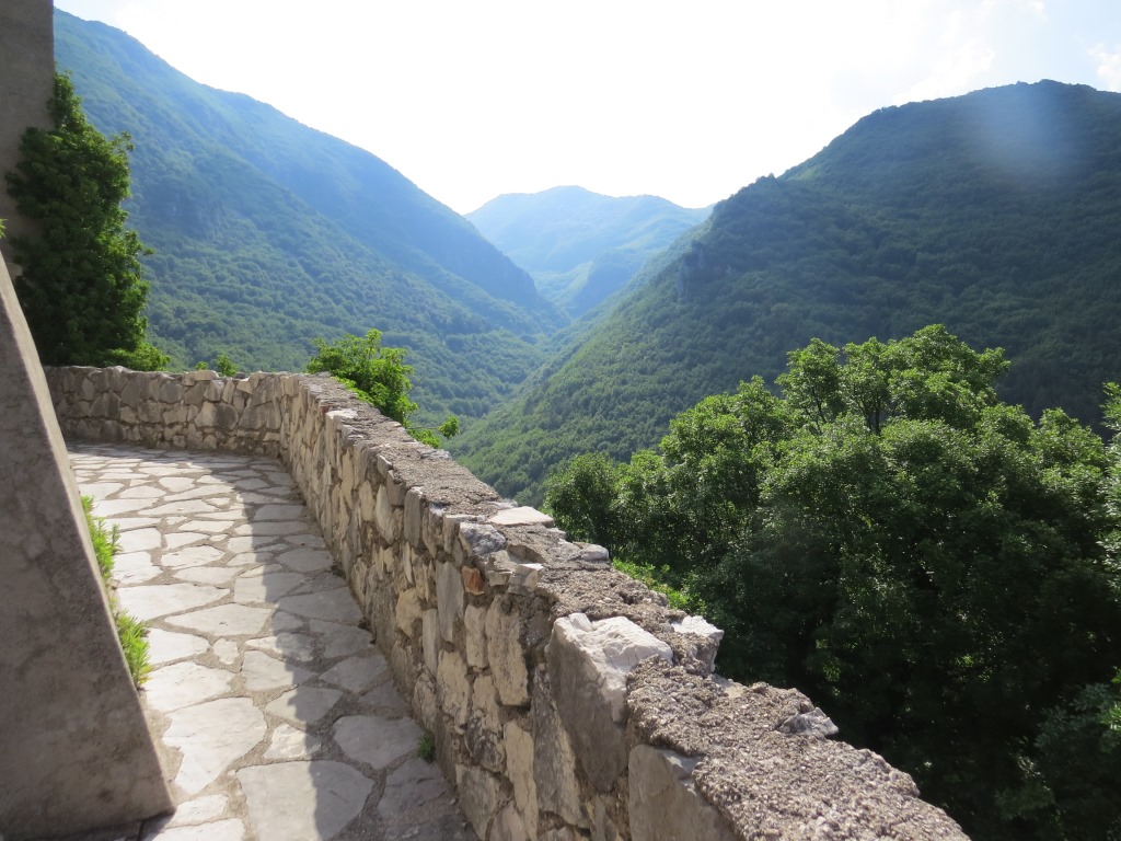 während dem Rundgang durch das Kloster blicken wir in die nahe gelegenen Berge