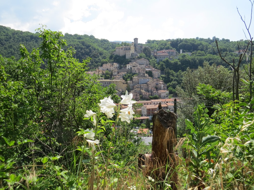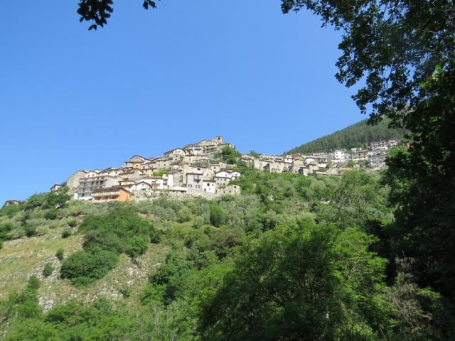 wir blicken zurück nach Cantalice mit Wehrturm