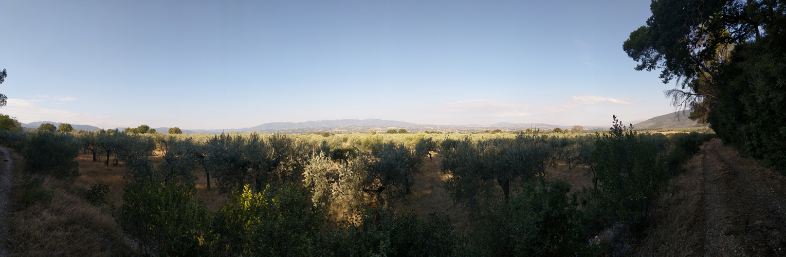 ganz weit weg am Horizont erkannt man den Monte Subasio der Hausberg von Assisi