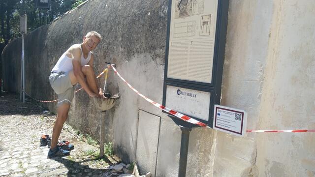 bei der Chiesa di San Pietro in Bazzano Superiore, erfrischen wir uns an einem Brunnen