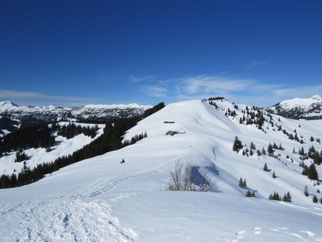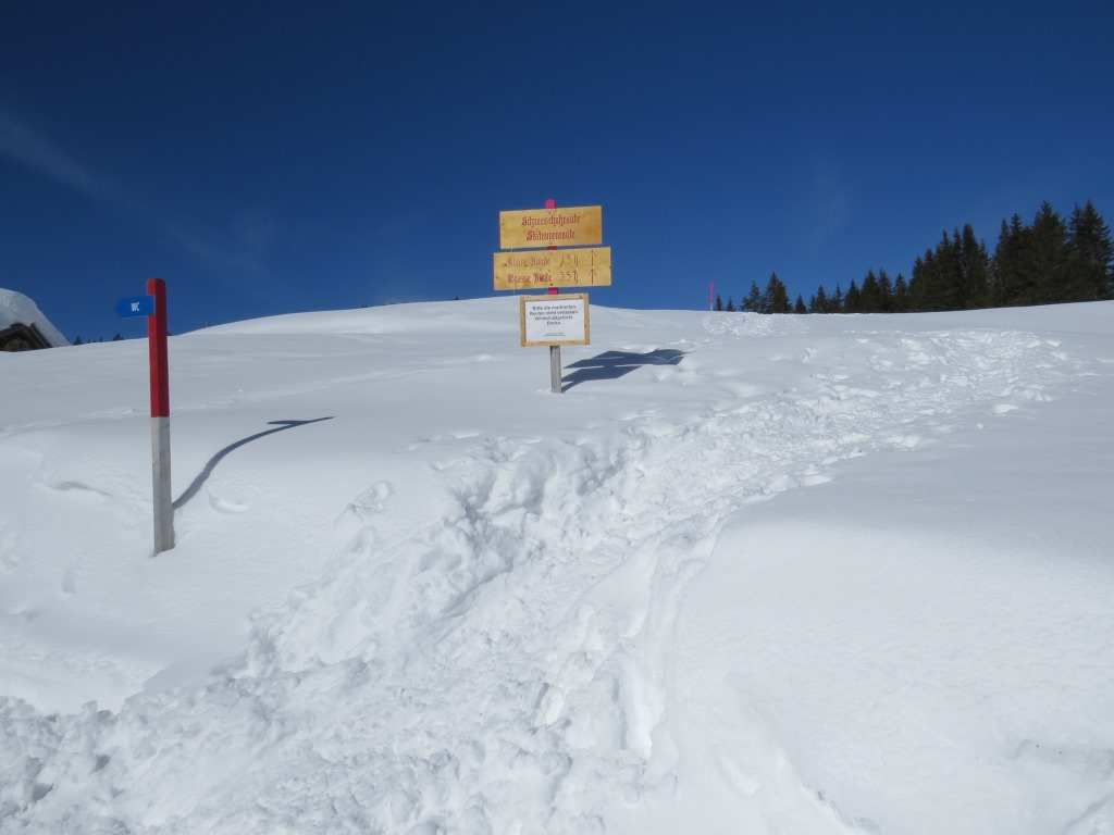 rasch haben wir die Alphäuser bei der Weggabelung 1704 m.ü.M. erreicht Datum 12.04.2018