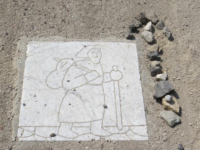 kurz nach Lambrinia erkennen wir zum ersten mal Pilgerzeichen am Boden