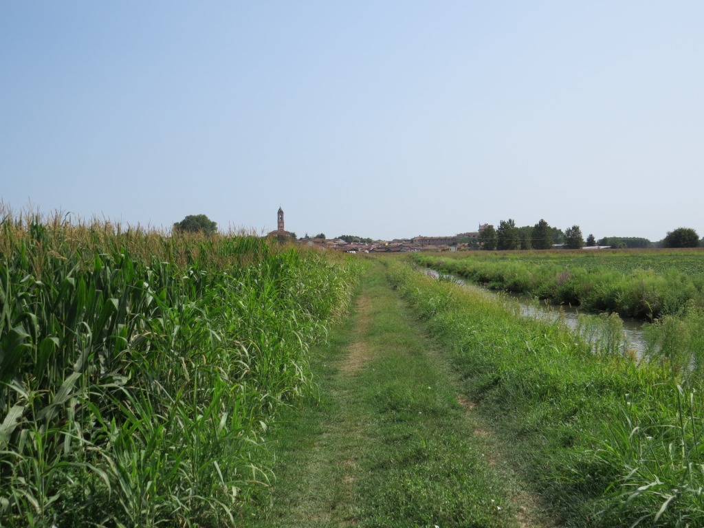 über Felder laufen wir, der Kirchturm immer vor Augen, Richtung Orio Litta