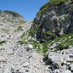 eine gut ausgebaute Steilrinne ermöglicht den Aufstieg zur Weggabelung bei Chäle Datum 25.03.2013