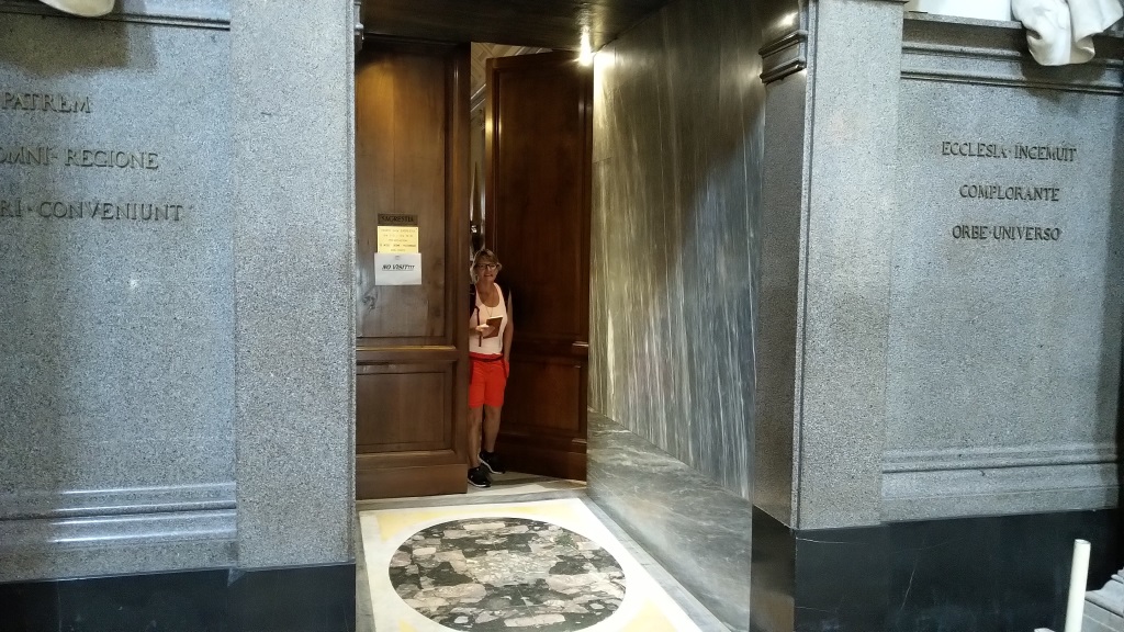 wir öffnen die riesige Tür und gehen in die Sakristei