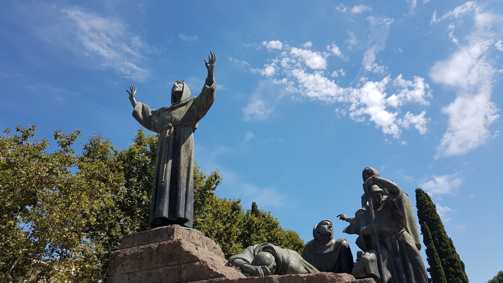 Erinnerungsfoto aufgenommen bei der Statue von Franziskus