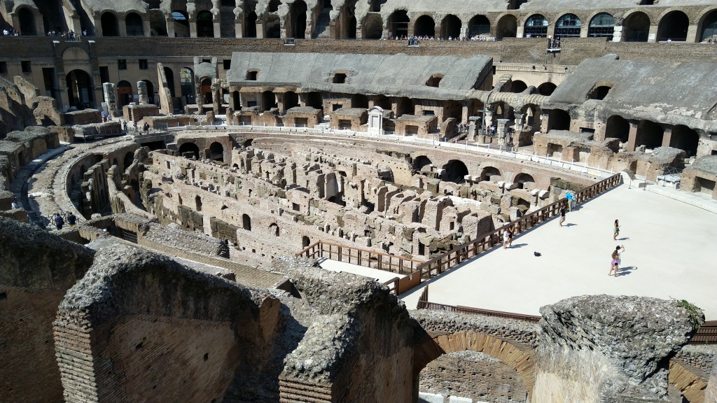 unter dem Platz, ein Labyrinth an Gängen und Zellen, für die Gladiatoren und die Tiere