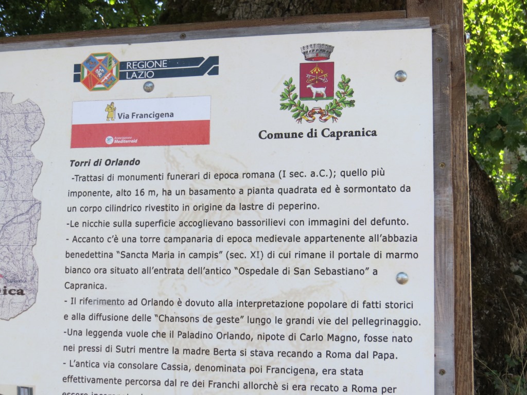 ein Wegweiser informiert uns, das Capranica nicht mehr weit ist