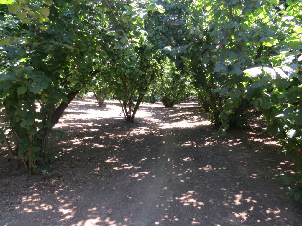 wir lassen den Wald hinter uns und endlose Haselnussplantagen tauchen vor uns auf