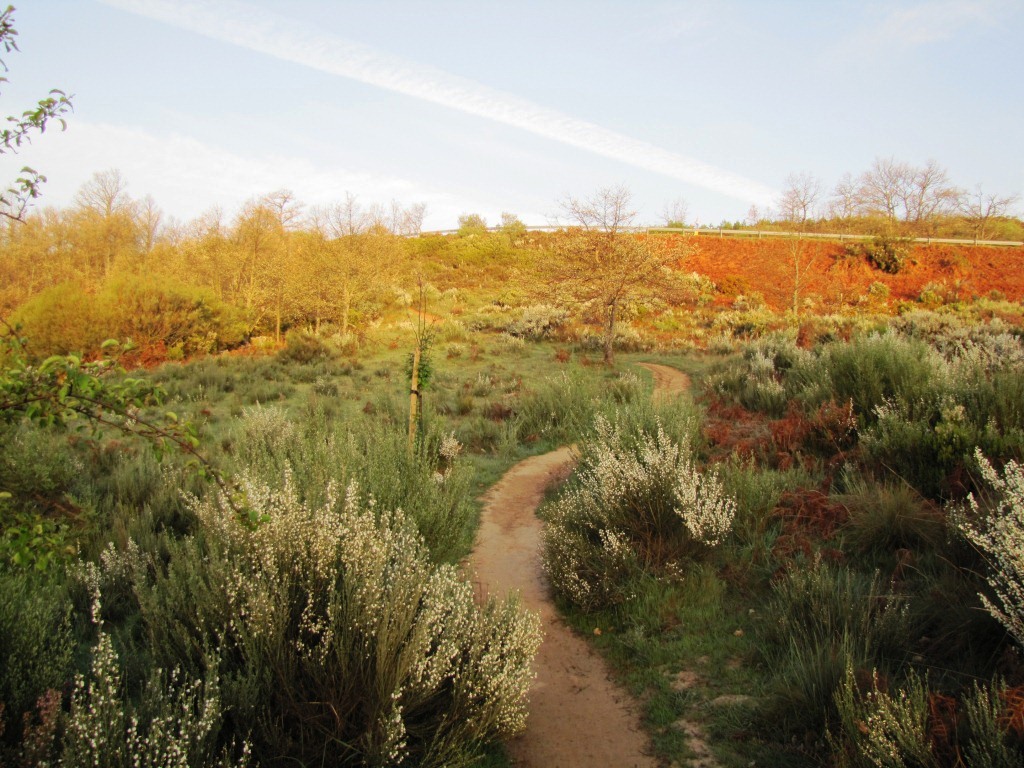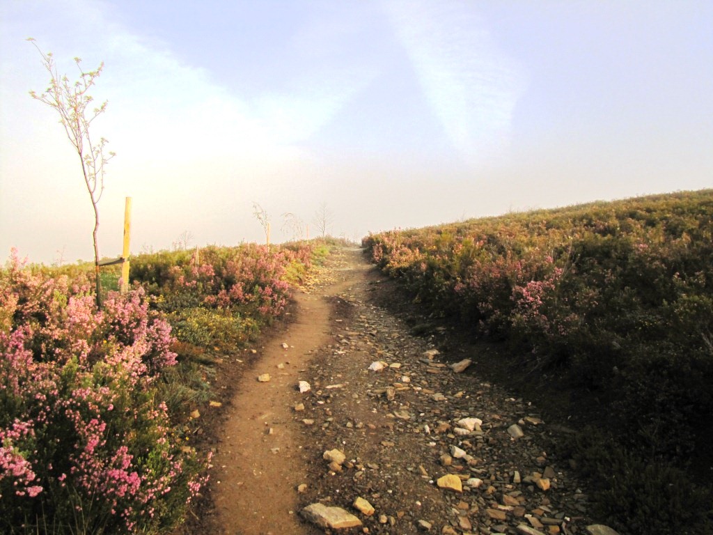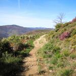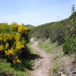 zwischen grossen Heidestauden, Ginster und Wiesenflächen führt der Pfad nun deutlich steiler aufwärts Datum 09.11.2012