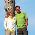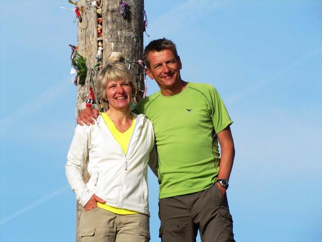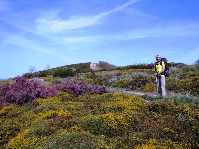 Annette und Mäusi. Annette ist überglücklich, sie hat den höchsten Punkt vom Camino hinter sich Datum 09.11.2012