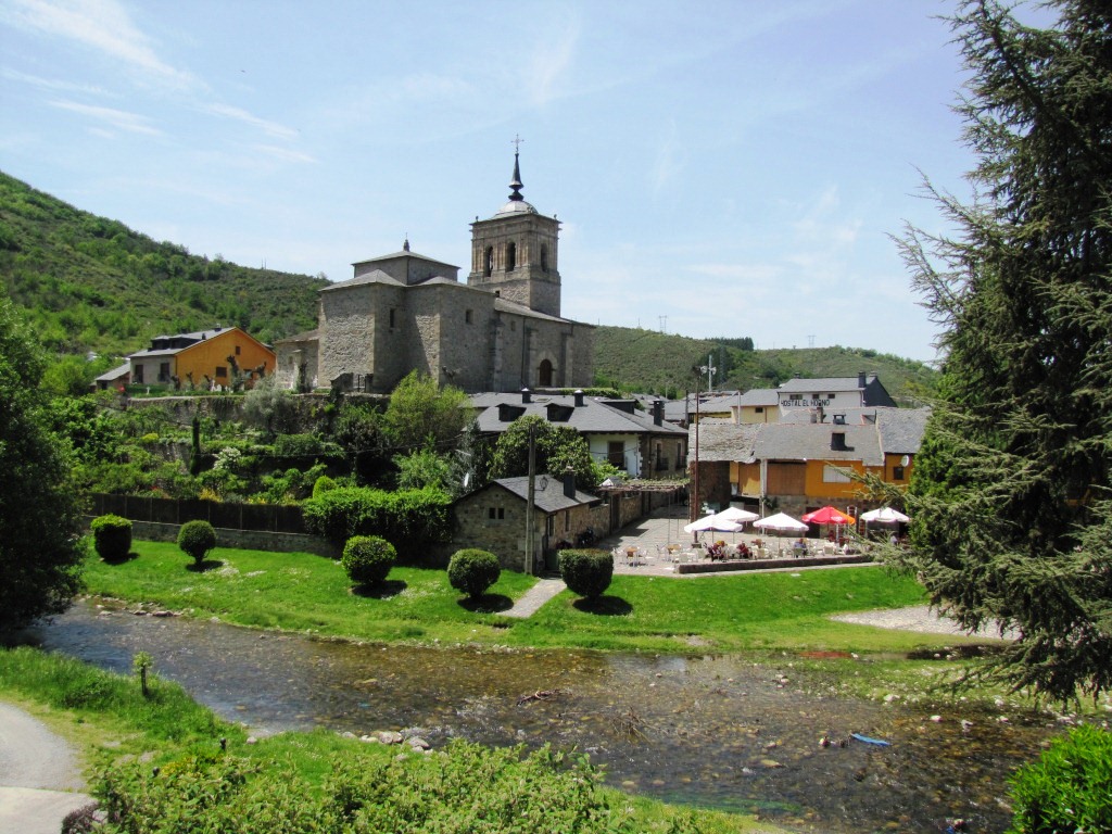 das schöne Molinaseca am Ufer des Río Meruelo gelegen, mit der Parroquia de San Nicolás de Bari Datum 09.11.2012