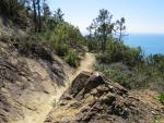gut ersichtlich der Wanderweg der sich nun senkt. Dahinter die Cinque Terre Datum 13.06.2023