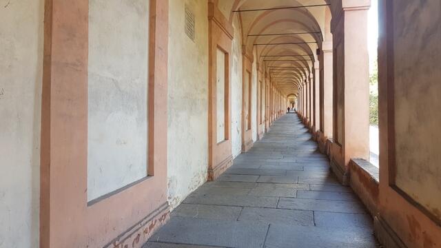 die Arkaden biegen nun links weg und führen aufwärts zum Santuario della Madonna di San Luca Datum 08.11.2020