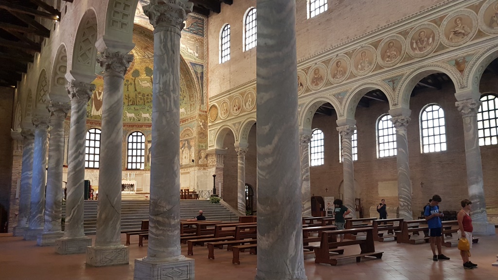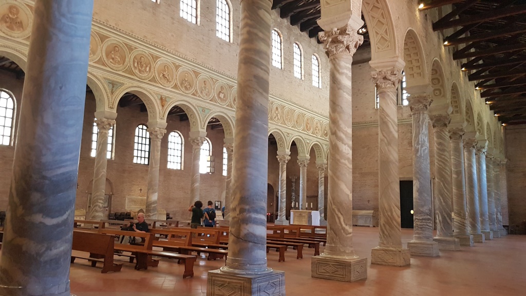 ...mit byzantinischen Kapitellen getrennt. Auch die letzte Sehenswürdigkeit von Ravenna hat uns sehr gefallen