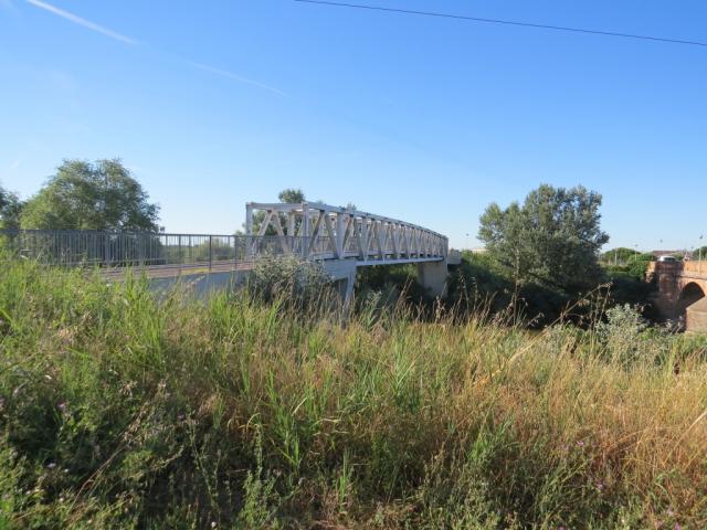 über eine neu erbaute Velo- und Fussgängerbrücke...