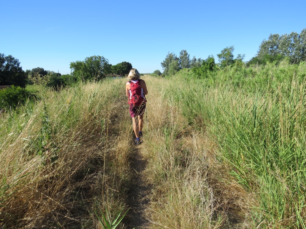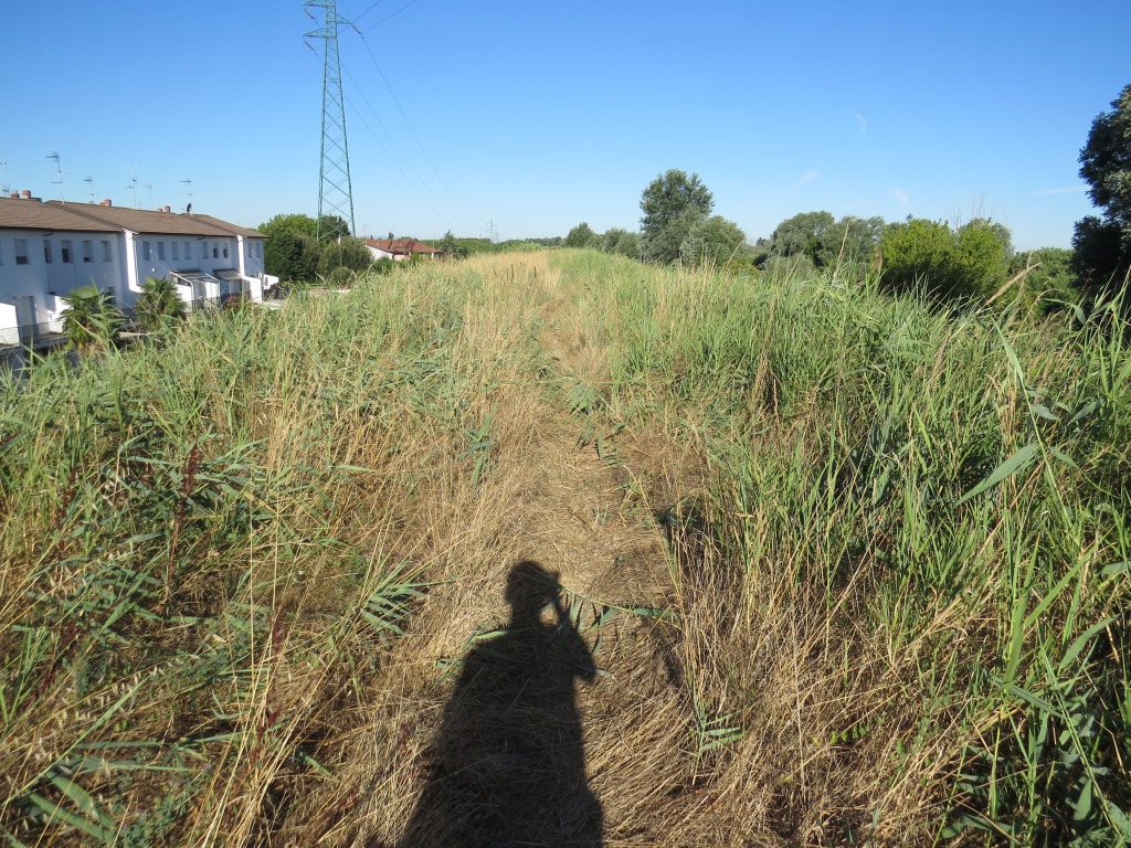 wir biegen rechts ab, steigen auf den Damm des Kanal Fiumi Uniti hinauf, und wandern flussaufwärts