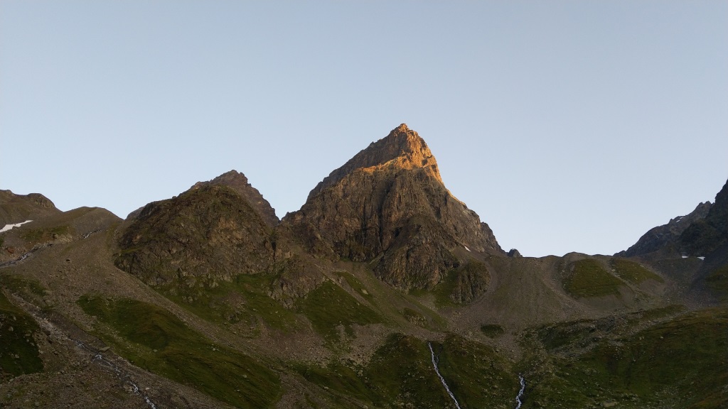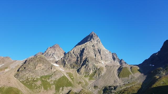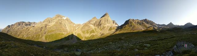 als wir am Morgen die Chamonna Tuoi verlassen, geniessen wir diese schöne Aussicht auf den Piz Buin