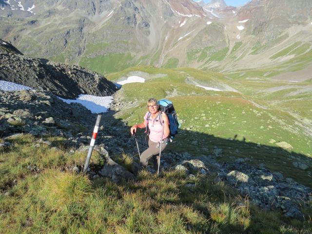 ...hinauf zur Furcletta 2734 m.ü.M. und zugleich zum Übergang ins Val d'Urezzas