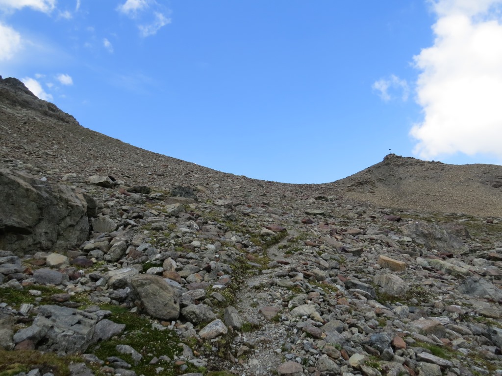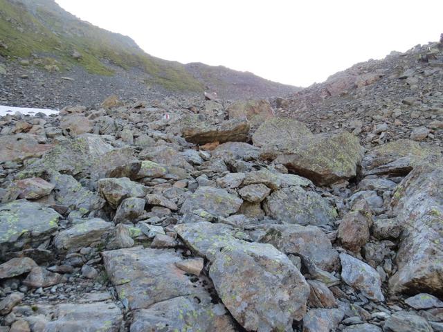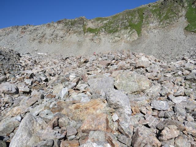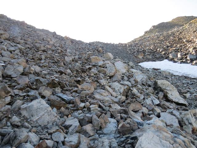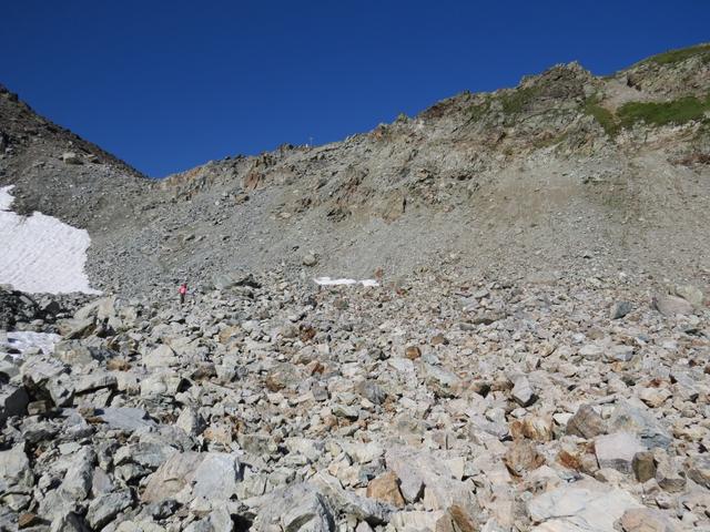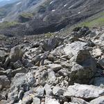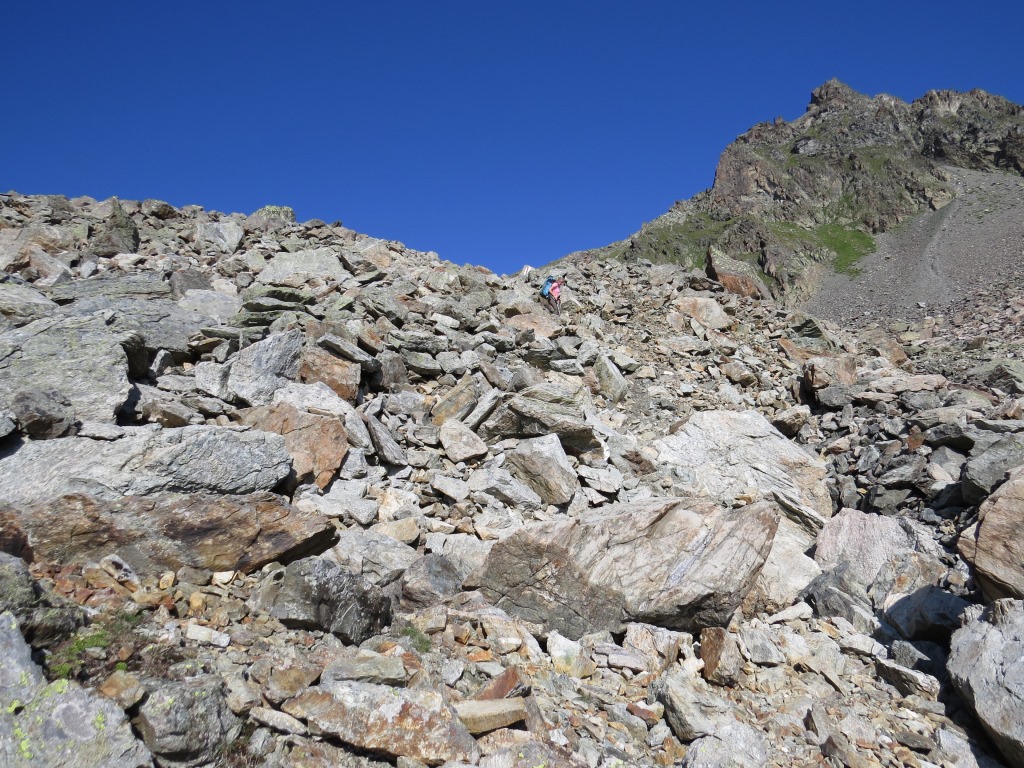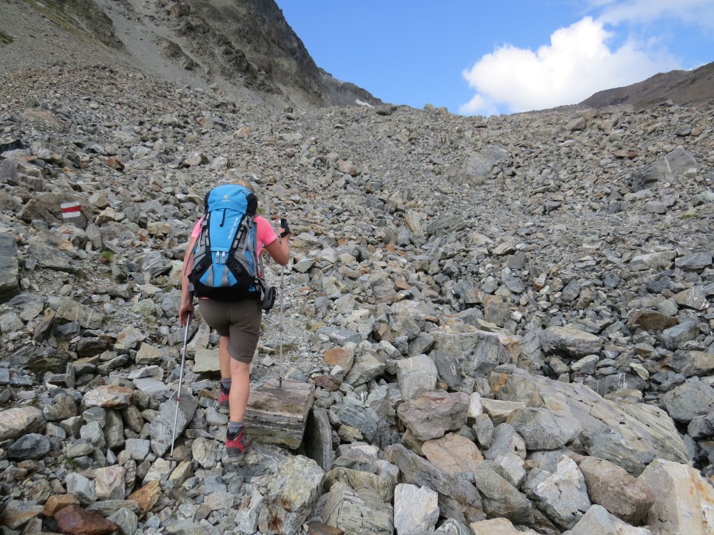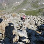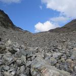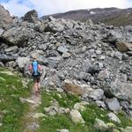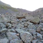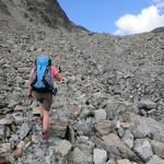 über Schutt und Blöcke geht es stetig aufwärts