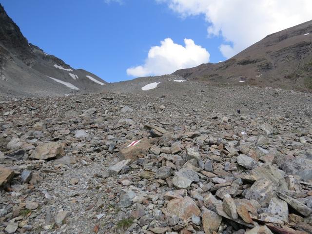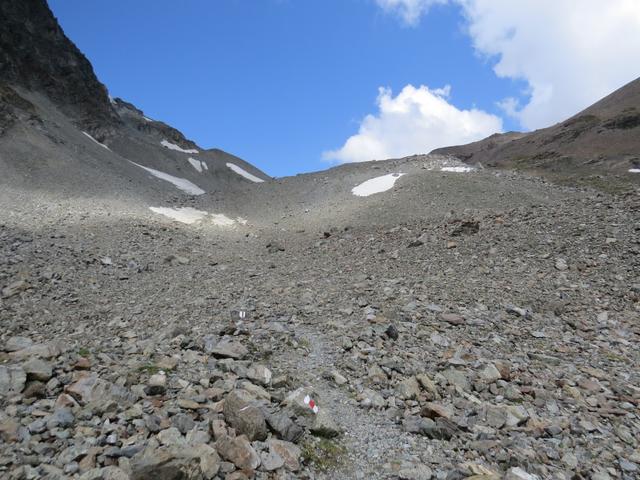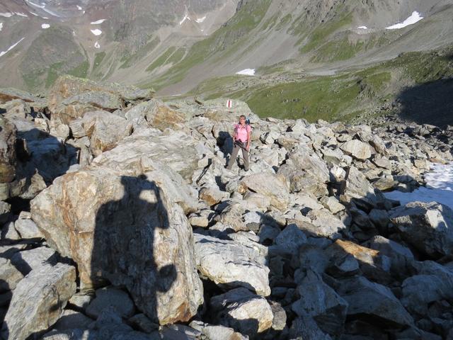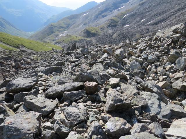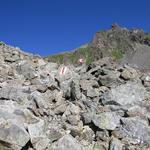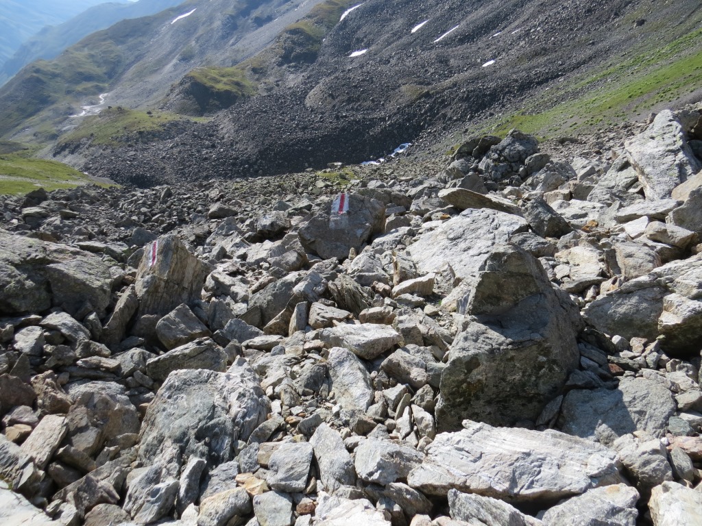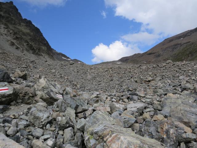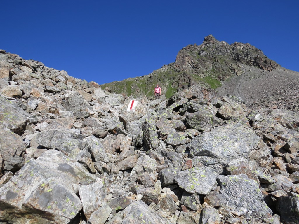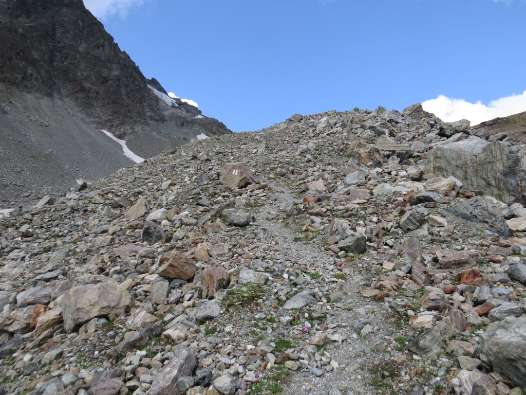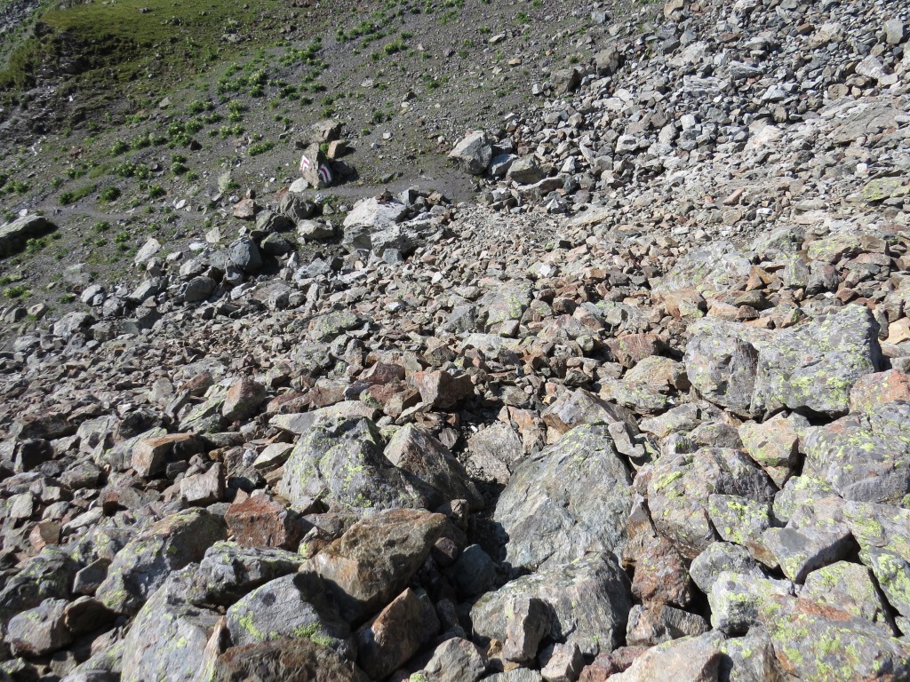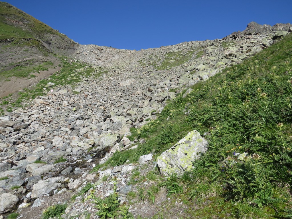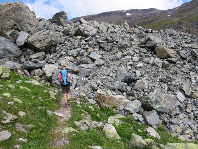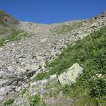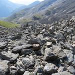 der Wanderweg führt nun steil über Blockschuttfelder