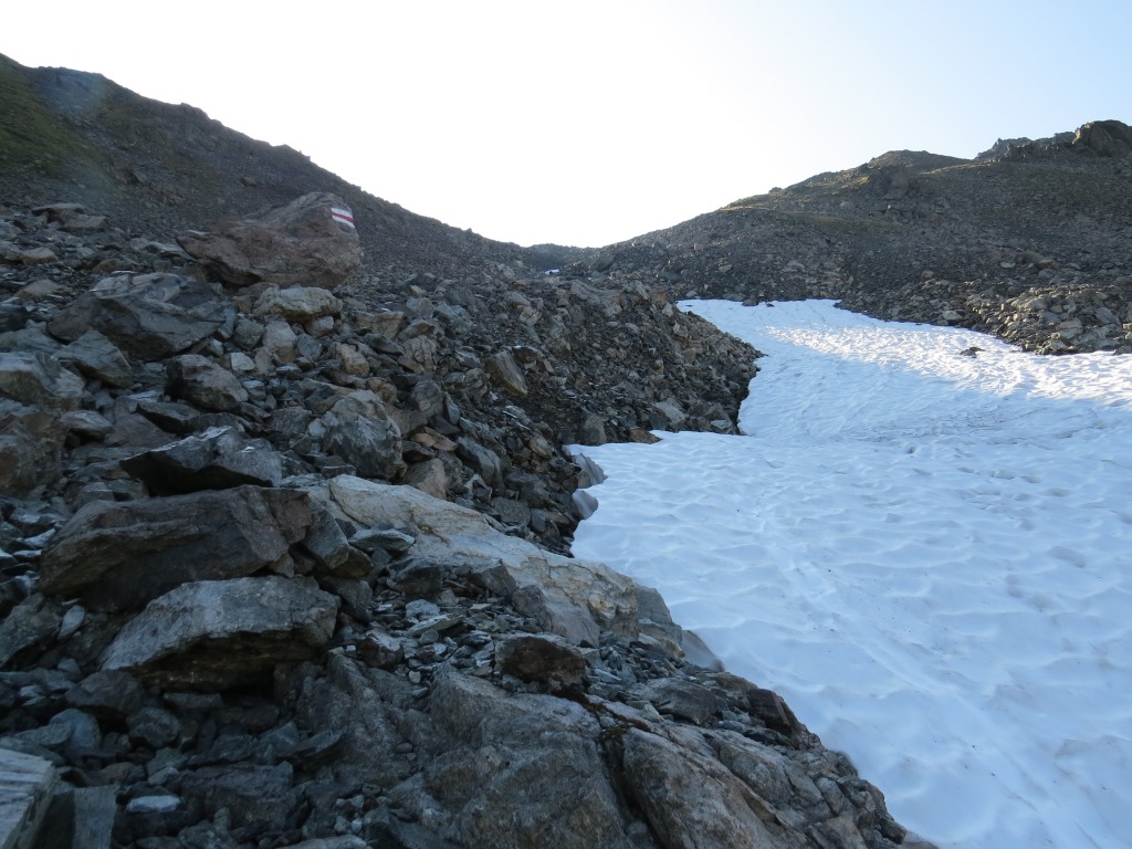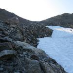 auf der Österreichischen Seite müssen wir nur kurz über Geröll und Altschneefelder laufenlaufen