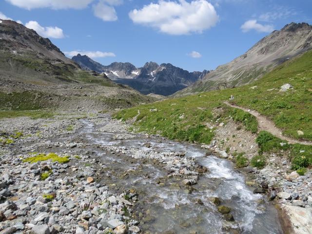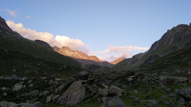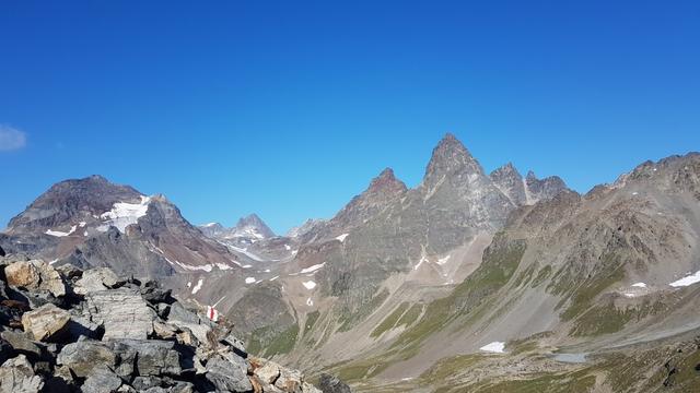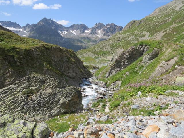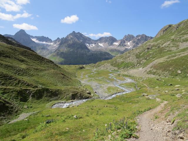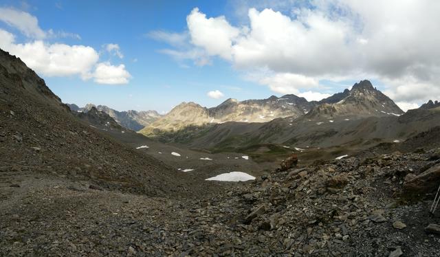 auf der anderen Seite blicken wir ins das Val d'Urezzas mit dem Piz Minschun