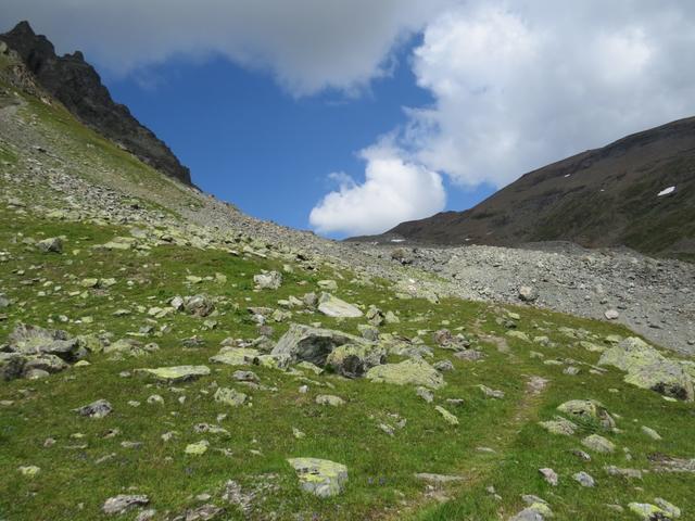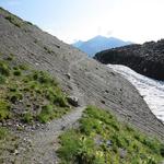 der Bergweg schlängelt sich durch diese Moränenlandschaft