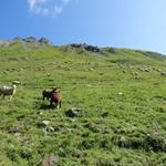 ...steigen wir über Alpweiden bergauf in östlicher Richtung