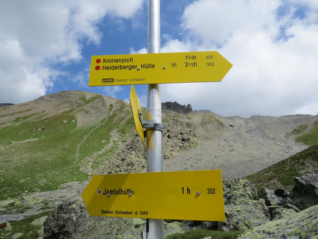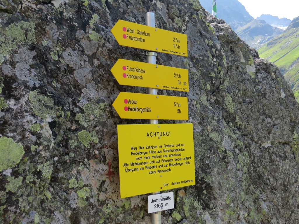 Wegweiser bei der Jamtalhütte