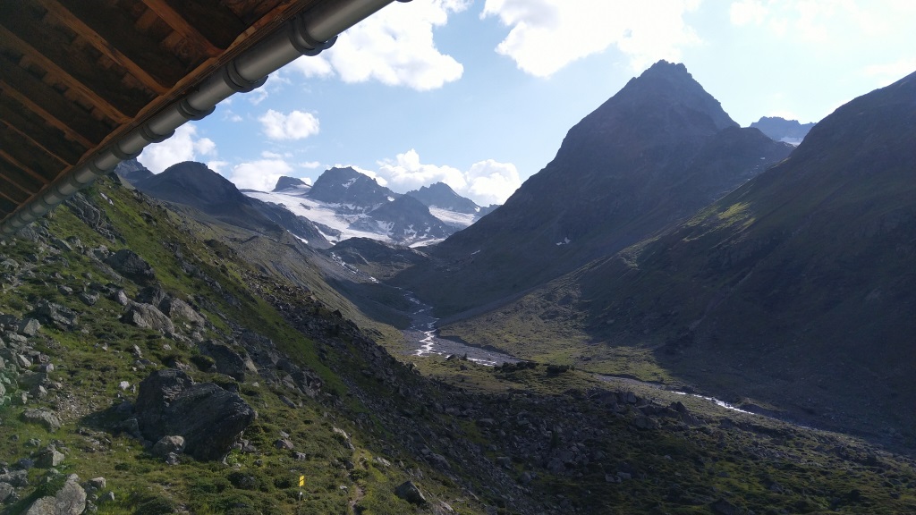 schauen wir aus dem Fenster von unserem Zimmer, können wir den Jamtalgletscher bestaunen