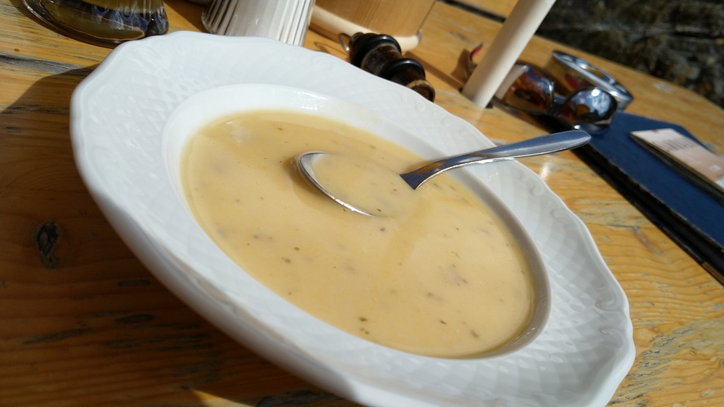 wir werden freundlich empfangen und erhalten zur Stärkung eine Pfifferling suppe