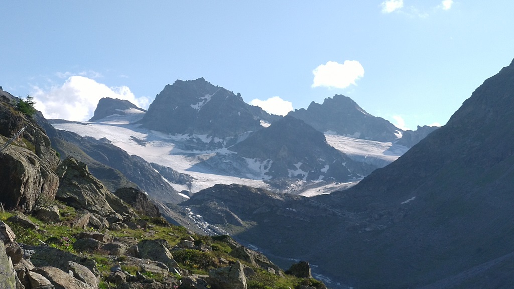 am Horizont erkennen wir die Haagspitze mit dem Totenfeldgletscher. Daneben Madlenerspitze und Getschnerspitze