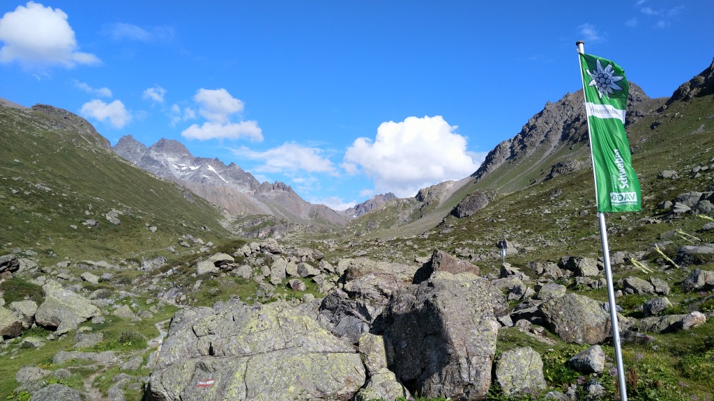 wir erreichen den Futschölpass 2768 m.ü.M. und gleichzeitig die Grenze Schweiz- Österreich