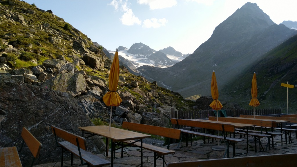 von der Terrasse aus, sieht man auch den Kronenjoch, den wir morgen überwinden werden