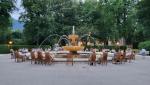 neben dem Gradierhaus steht ein grosser Brunnen, mit Liegestühle. Die Luft ist mit Alpensole angereichert