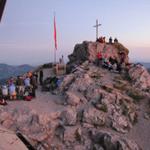 frühmorgens auf dem Grossen Mythen. Eine grosse Anzahl an Berggänger hat sich am Gipfel versammelt Datum 17.12.2011