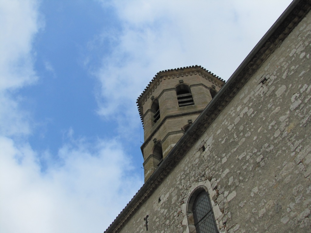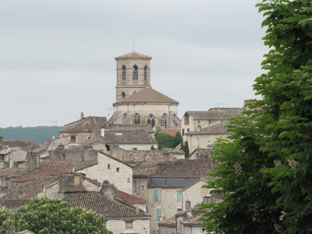 Blick zum bekannten Turm der Kirche von Montcuq