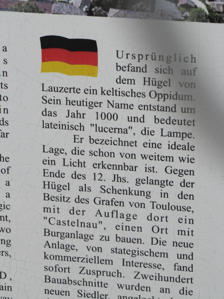 Infotafel über die Geschichte von Lauzerte Teil 1