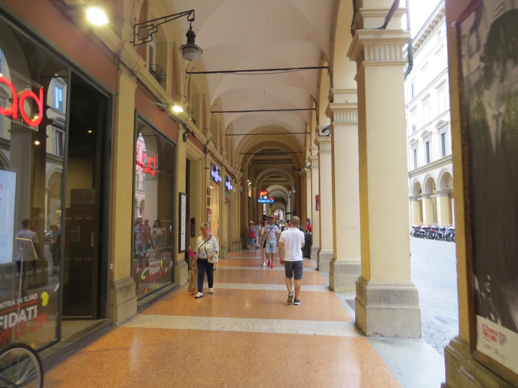 wir laufen durch die Arkaden von Bologna. Bologna besitzt 38km davon