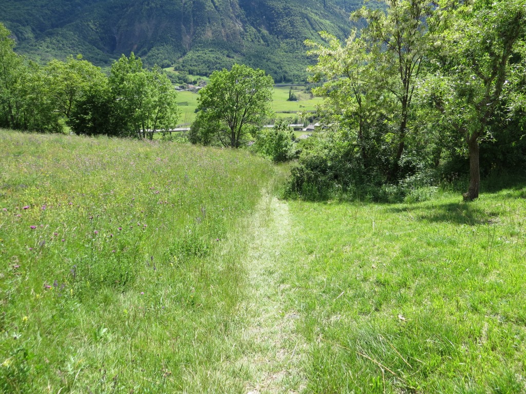 vorbei an Sorreley laufen wir eben und aussichtsreich, weiter Richtung Nus