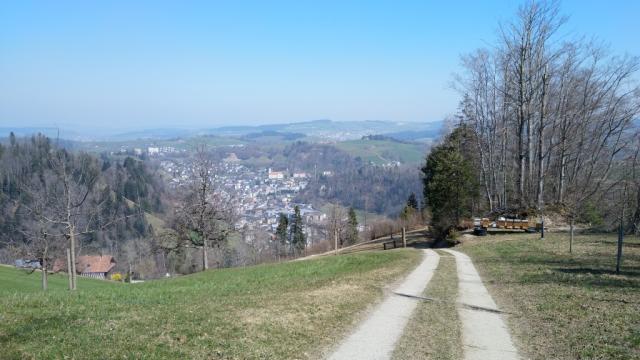 während dem wandern Richtung Wolhusen blicken wir zurück zum Wallfahrtsort Werthenstein