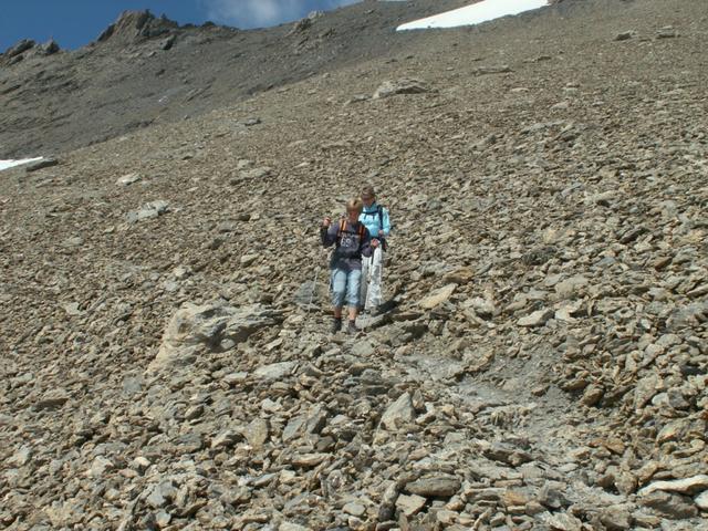 Göttibub Riccardo und Mäusi beim Abstieg vom Segnespass